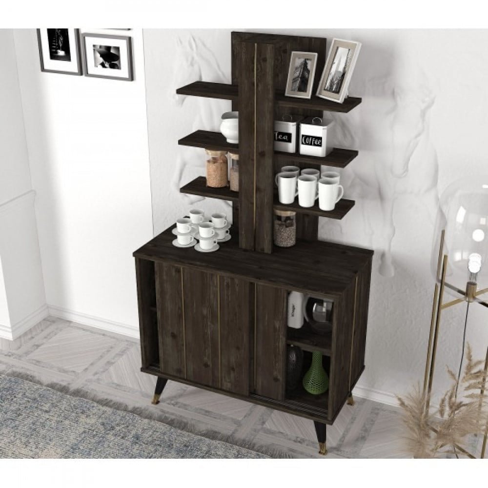 الي جميع عشاق القهوه والذين يريدو ان يجعلو ركن في المنزل خاص بهم تم توفير ركن القهوه هذا لهم خصيصاً بتصميم عملي و ممتاز من الخشب الصلب و اللون الخشبي الغامق الذي يشبه لون القهوه مع مقاس ( ارتفاع 161.6 سم * العرض 90 سم * العمق 45 سم )