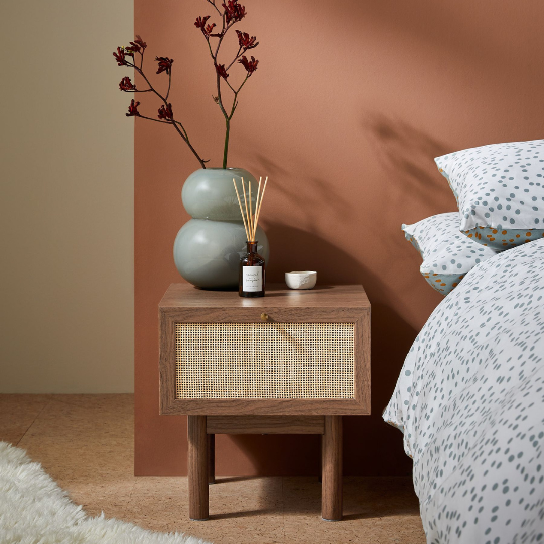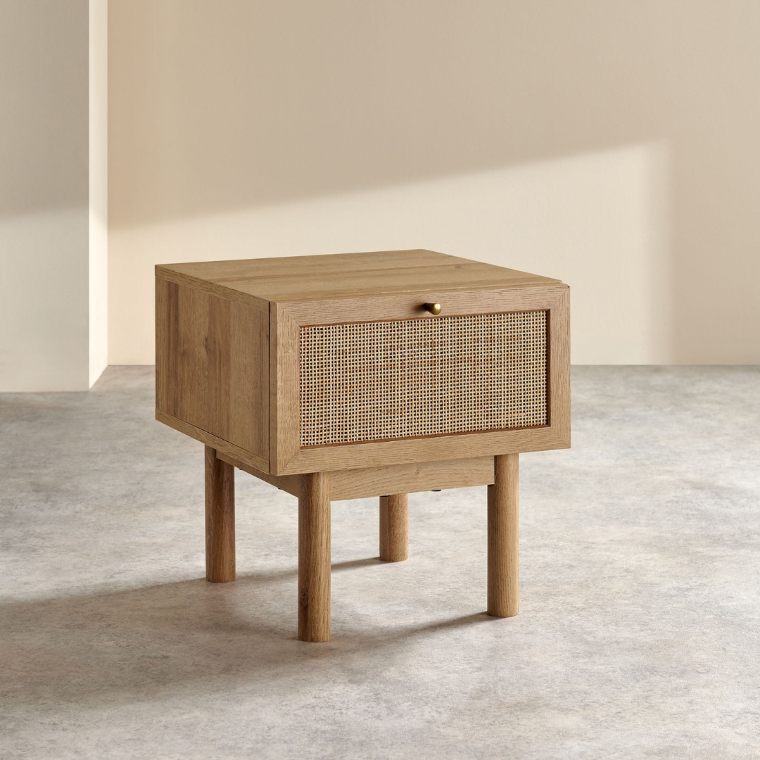 أضف لمسة من الدفء والأناقة إلى غرفة نومك مع هذه الطاولة الجانبية الساحرة، حيث يجتمع الخشب الطبيعي الغني مع لمسات من الخيزران المنسوج ليمنحك تصميمًا مستوحى من الطراز البوهيمي الأنيق، يتميز الدرج الواسع بمساحة تخزين عملية للحفاظ على أغراضك مرتبة، بينما يضيف السطح العلوي مساحة مثالية لوضع مصباح أو ديكوراتك المفضلة، بتصميمها البسيط والراقي، تضفي هذه الطاولة لمسة طبيعية دافئة على أي مساحة، مما يجعلها الخيار المثالي لعشاق الديكور الراقي والمريح