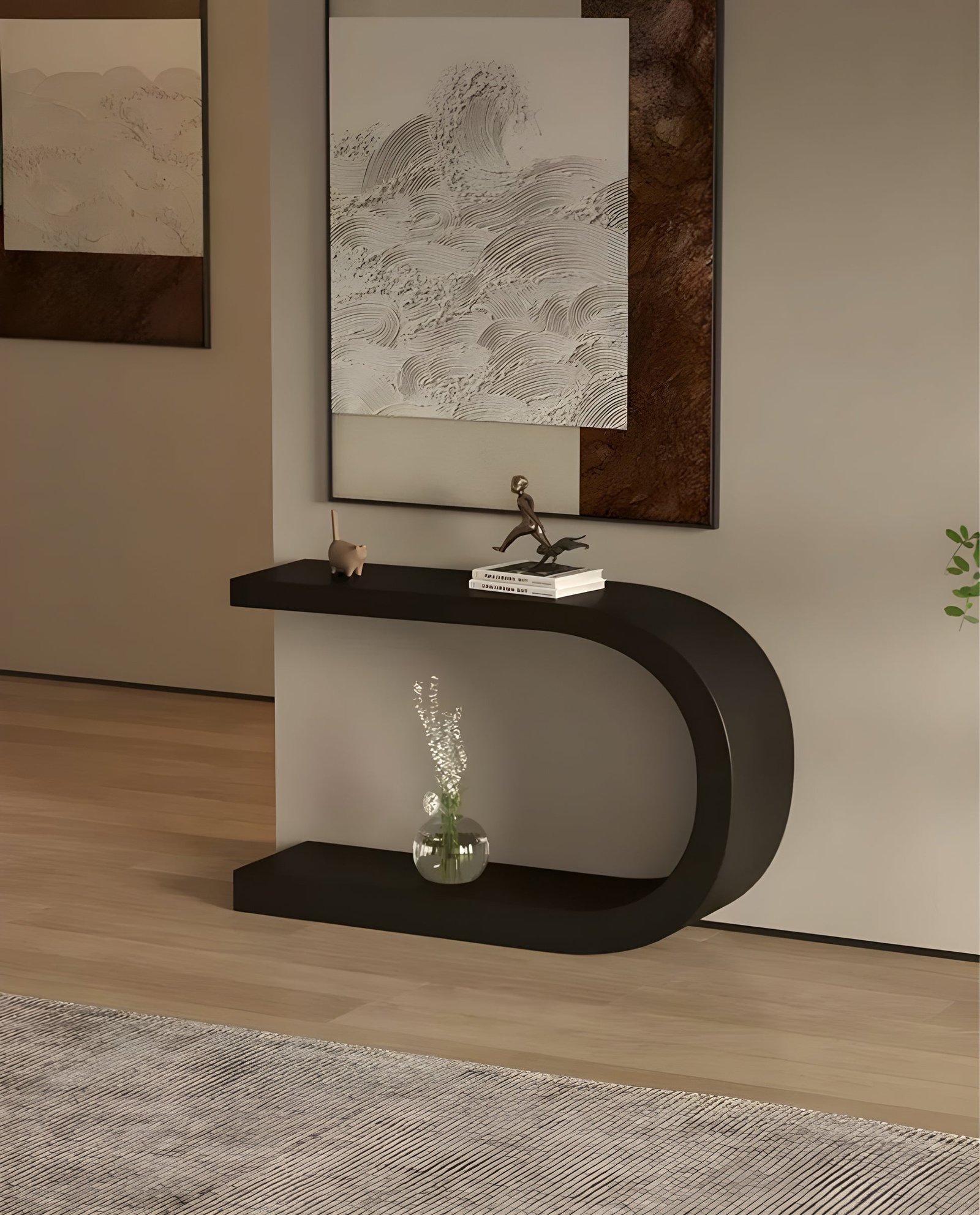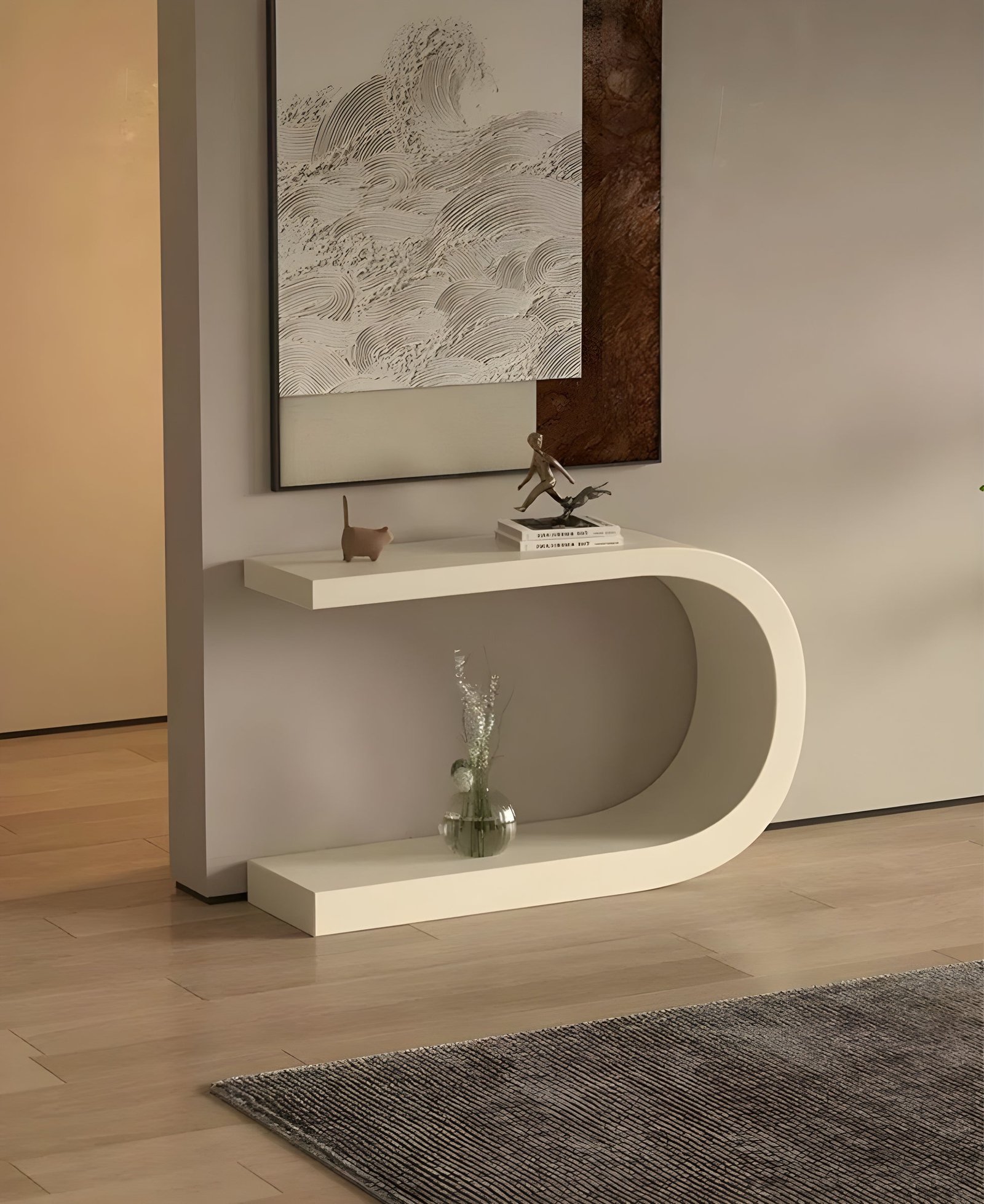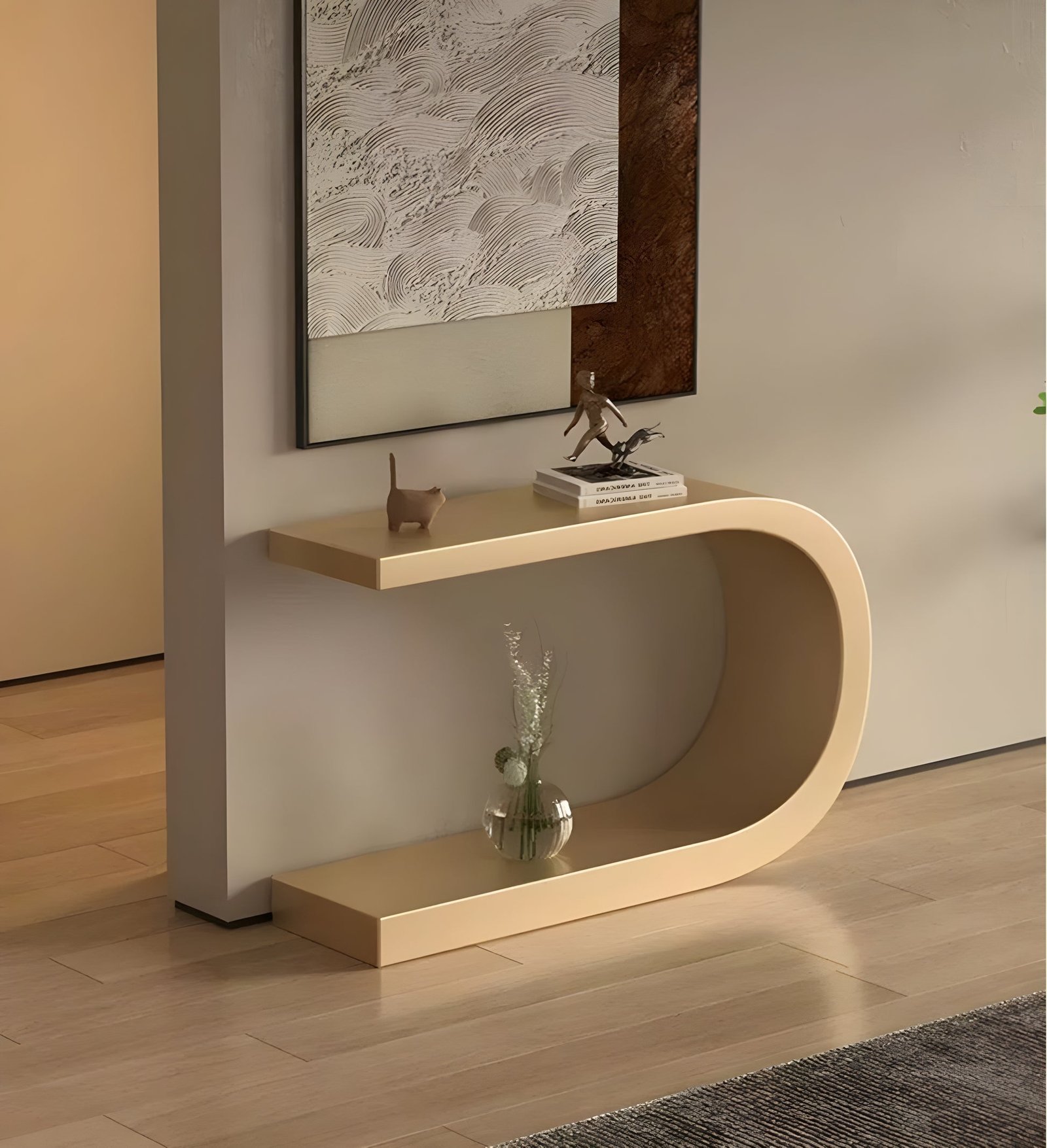 كونسول مدخل بتصميم إنسيابي مودرن , صمم خصيصا ليضيف لمسة من الجاذبية والأناقة الي مدخل منزلك حيث وذلك بفضل التصميم الهندسي المدروس والمتقن , كما انة تم استخدام افضل الخامات واجودها مع الوان عديدة لتقديم منتج يناسبك.