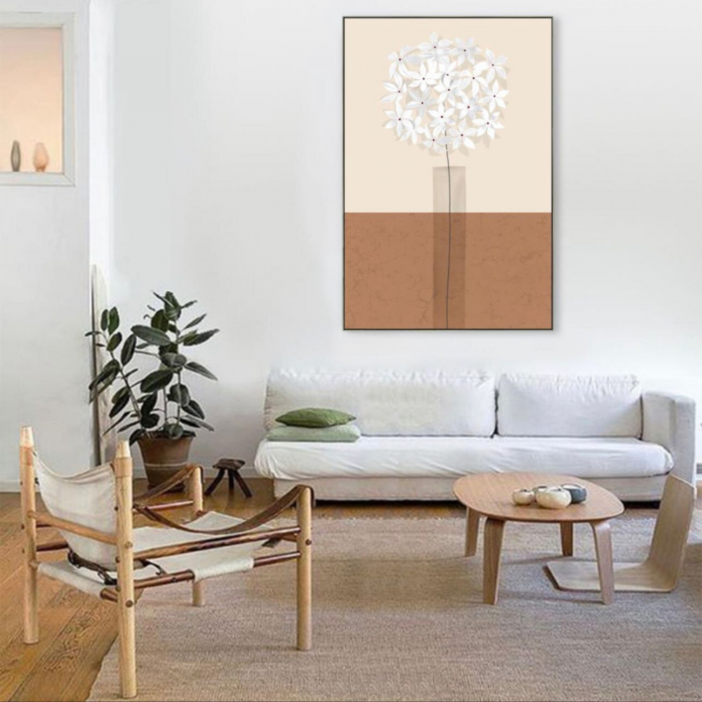 لإضافة لمسة من العصرية والتميز لديكور غرفة المعيشة اطلب هذه اللوحة الرائعة المصممة بألوان متباينة، هذه اللوحة مزودة بأزهار بلون أبيض مصممة بشكل ثلاثي الأبعاد لمزيد من التألق والفخامة، كما تم تصميمها بشكل طولي للإيحاء بزيادة ارتفاع سقف الغرفة.