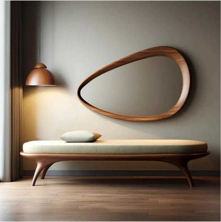 اكتشف عمق الجمال الهادئ والجاذبية العضوية مع هذه المرأه . هذه المرأة ليست مجرد سطح عاكس، بل هي قطعة فنية نحتت لتكون نقطة محورية تبعث على السكينة في أي مساحة. تصميمها البيضاوي الفريد، المستوحى من الأشكال الطبيعية الملساء، يضيف لمسة من الأناقة العصرية والهدوء الفطري