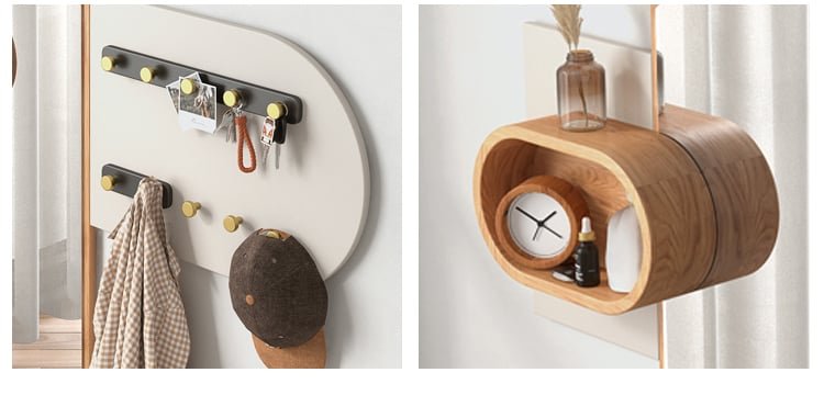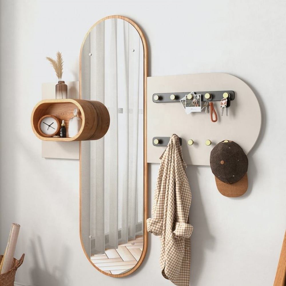 مرايا متعددة الوظائف بتصميم حديث وانيق تتميز بخطافات جانبية لتعليق المفاتيح او الاوشحة متاحة باللون الخشبي مع الرمادي الفاتح ومتوفرة بمقاس عرض 144سم وارتفاع 153سم ويمكن استخدامها في الممرات او غرف النوم او غرف المعيشة , اطلبها الان واستمتع بمنتج يجمع بين الوظيفة والاناقة !