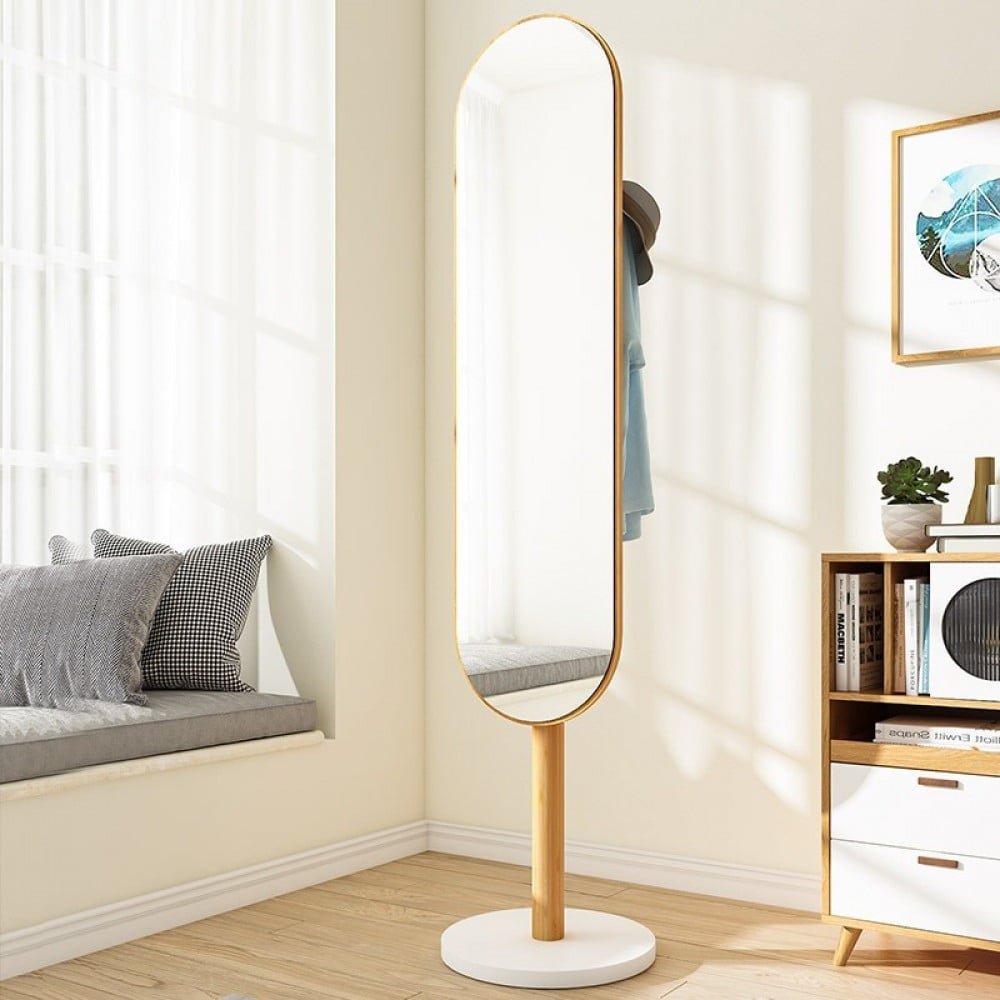 مراية قابلة للدوران تصميم حديث ،من خشب المتين ، والذي يتميز بقوة عالية ، تصميم بسيطة ومريح ، قاعدة خشبي دوارة متحركة بمقدار 360 درجة ، هيكل من الخلف يحتوي على علاقة ملابس . متوفره باللون البني و الخشبي الفاتح و مقاس ( ارتفاع 120 سم و عرض 30 سم وعمق 4 سم )
