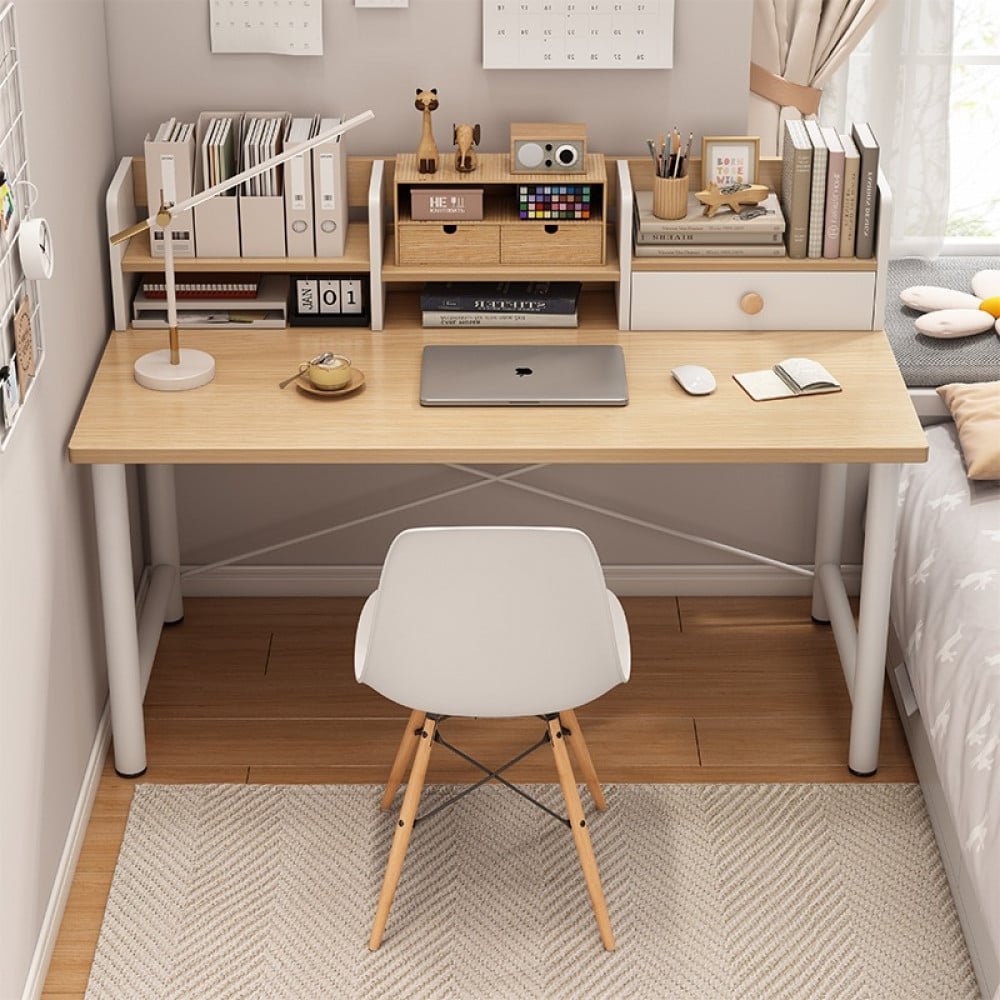 مكتب بتصميم انيق مصنوع من اجود خامات الخشب و متاحه باللون الابيض و الخشبي و متوفر بمقاس ارتفاع100 سم و عرض80/100/120 سم و عمق50سم و يمكن استخدامها في المنزل و الفنادق
