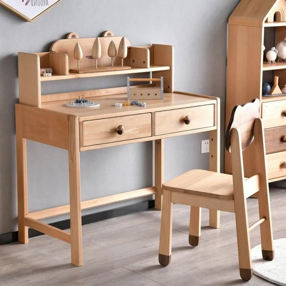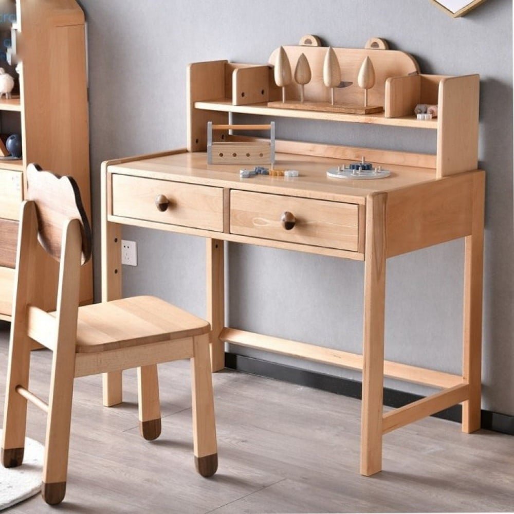 مكتب اطفالي مزود بـ2 ادراج اماميه , مصنوع من الخشب الصلب و متوفر باللون خشبي و متاح بمقاس العمق 54.5* العرض 112* الارتفاع 99سم عالية و يمكن استخدامه في المنزل و العديد من الاماكن