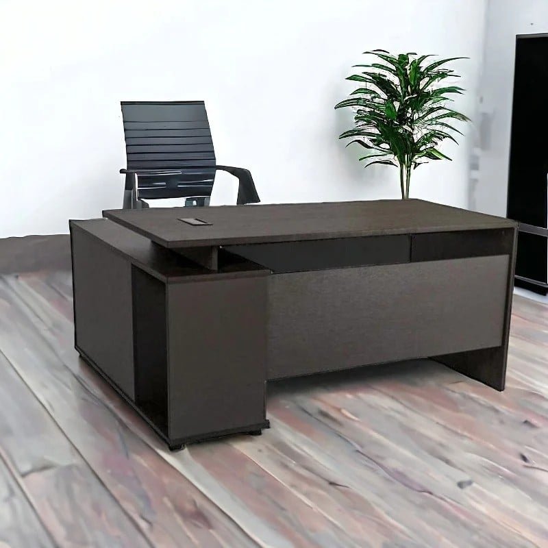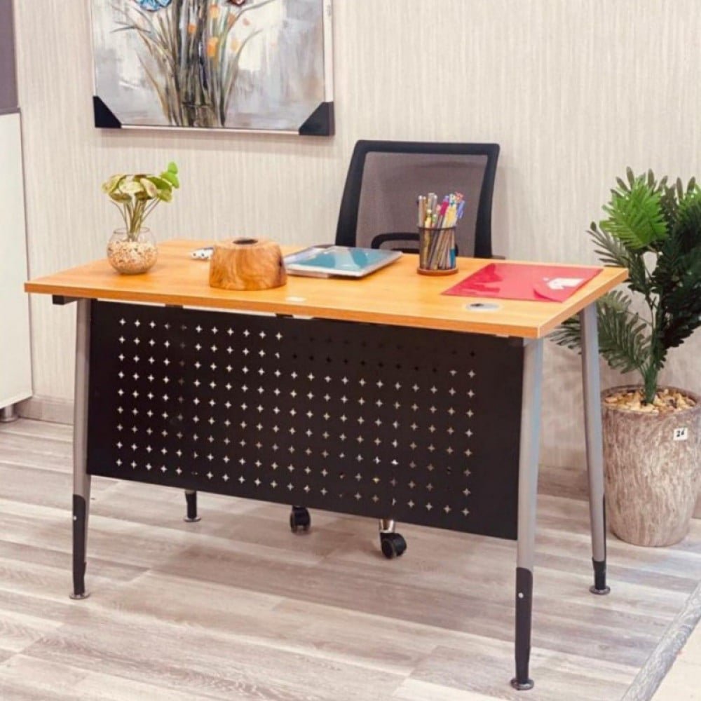 يتميز مكتب معدن فاخر بجمالية وتصميم مميز يجعله مثالياً للاستخدام فيديكورات الحديثة والكلاسيكية على حد سواء. تتوفر هذه القطعة الفخمة بالألوان الخشبي و الرمادي، مع تفاصيل فضيه رائعة. تضفي مساحة رخيصة من الفخامة والرفاهية مع أرجلها القوية والمتينة. يبلغ عرض المكتب120سم وارتفاعه 75سم، مما يجعله مثالياً للاستخدام في المكاتب وغرف الاستقبال والمنازل